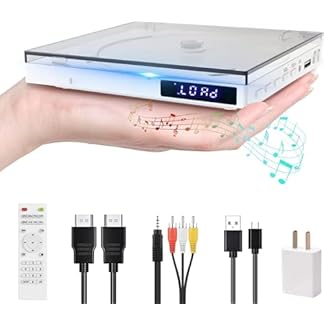 HDMI DVD Player für TV, Kompakter DVD Player HDMI mit Kopfhörer, eingebautem Lautsprecher und USB Anschluss, Region Free für NTSC/PAL Systeme, DVD Player mit HDMI RCA Kabel, Kopfhörer