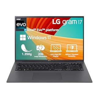 1249,00 €Produkt kaufen2023 LG gram 17 Zoll Ultralight Notebook – 1.350g Intel Core i7 Laptop (16GB RAM, 1TB SSD, 20h Akkulaufzeit, 16:10 Entspiegeltes IPS-Display, Thunderbolt 4, Win 11 Home, Mirametrix) – Grau