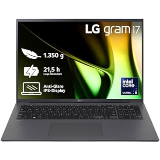 2024 LG gram 17 Zoll Notebook – 1350g Intel Core Ultra7 Laptop (8GB RAM, 512GB Dual SSD, 21,5h Akkulaufzeit, IPS Panel Anti-Glare Display, Win 11 Pro) – Grau