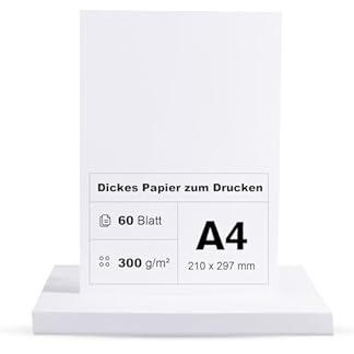 13,99 €Produkt kaufen60 Blatt Dickes Papier 300g/m² A4 zum drucken Premium Papier Dickes zum Drucken Kartonpapier Tonkarton Pappe Weiß DIN A4-21 x 29,7 cm