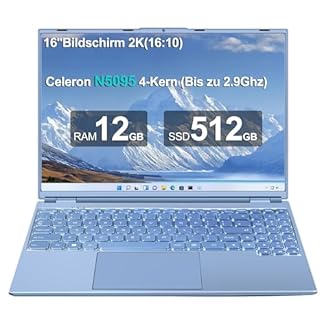 311,99 €In den WarenkorbAOCWEI Laptop 16 zoll 12GB RAM 512GB ROM Erweiterungen 2,5″ 1 TB SSD, Laptop Win 11 mit 4-Core CPU N5095 (bis zu 2,9 GHz), 1920 * 1200丨5G WiFi丨Bluetooth & Deutsche Tastatur Aufkleber-Violett