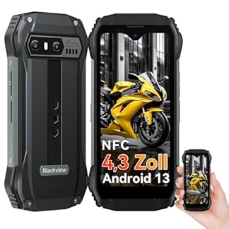 239,99 €Produkt kaufenBlackview N6000SE Mini Outdoor Handy Ohne Vertrag, 12GB+128GB 4.3″ QHD+ Baustellenhandy Android 13, 13MP+8MP Kamera Outdoor Smartphone, 3700mAh Akku Handy/NFC/Face ID/GPS/IP69K