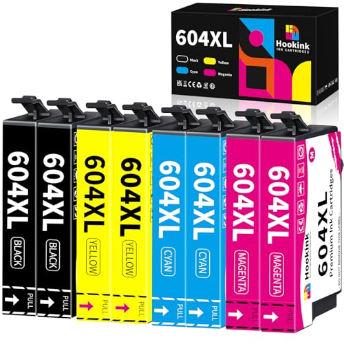 Hookink 8er-Pack 604XL 604 Druckerpatronen Kompatibel für Epson 604XL Patronen für Expression Home XP-3200 XP-3205 XP-4200 XP-4205 XP-2200 XP-2205, Workforce WF-2910 WF-2930 WF-2935 WF-2950