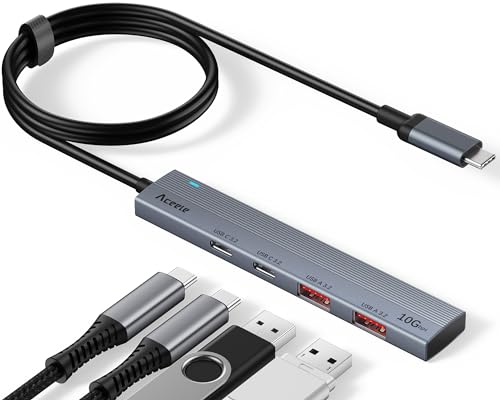 Aceele USB C Hub 3.2 Gen 2 Splitter, 10 Gbit/s USBC Multiport Adapter mit 2 USB-A und 2 USB-C-Anschlüssen, Typ C-Dock mit 100 cm Kabel für Laptops, Desktops PC, MacBook Pro Air, iPad, iMac usw