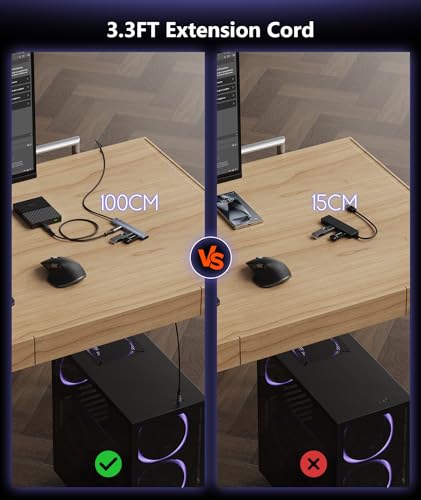 【100 cm Kabellänge + Klettverschluss】Aceele USB Hub hat eine ultradünne Form und ein minimales Gewicht. Das Kabel ist auf 1 m verlängert und kann mit einem Klettverschluss verlängert oder gekürzt werden. Welches ist besser sinnvoll für zu Hause, im Büro oder flächendeckend.