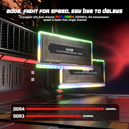 【RGB DDR & Beleuchtungsanpassung】Der ACEMAGIC AD08 Mini PC verfügt über einen integrierten lichtemittierenden DDR4-Speicherstick, verfügt über RGB-Lichteffekte und das DDR-Sichtfenster mit kreativer Wabenstruktur ist einzigartig attraktiv, und die Beleuchtung ist kühl, ohne Lichtverschmutzung zu verursachen. Der Text auf der Oberseite kann durch die selbst entwickelte Lichtsteuerungssoftware mit unterschiedlichen Lichteffekten versehen werden. (PS: RGB DDR kann den Lichteffekt nicht auf dieselbe Ebene stellen)