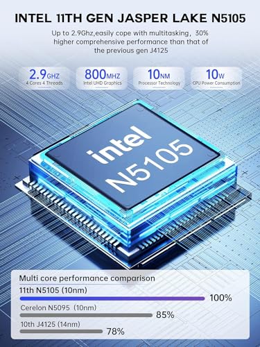 【Verbesserter und neuerer Mini-PC】Angetrieben durch Prozessor N5105 der 11. Generation (4C/4T, 4M Cache, bis zu 2,9 GHz), liefert unglaubliche Reaktionsfähigkeit und ist reibungsloser qua J4125, J3455, J4205, N3455 usw. Schneller und verwahrlost abzüglich Strom qua der 2,5 GHz N5095. Ausgestattet mit Intel U. HD-Grafik (bis zu 800 MHz, 24 Ausführungseinheiten), unterstützt 4K-Videowiedergabe und Websurfen, oder verbinden Sie sich mit Ihrem Projektor qua Heimkino, genießen Sie eine Differenziertheit von Unterhaltung.