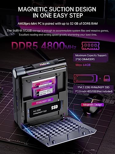 ●Ein weiteres Highlight unseres Mini-PCs ist der erweiterbare und größere Arbeitsspeicher von 32 GB DDR5 sowie eine Speicherkapazität von 512 GB SSD. Diese Speicherkonfiguration ist ideal für Aufgaben, die eine große Absolutbetrag an Arbeitsspeicher und schnellen Speicherplatz erfordern. Darüber hinaus bietet unser Mini-PC eine schnelle und reibungslose Benutzererfahrung, die die Effizienz und Produktivität Ihrer Essay verbessert.