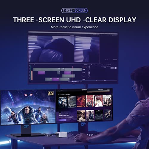 【4K-Triple-Screen-Display, Erleben Sie ein visuelles Fest】Der Mini-Würfel-Computer verfügt über drei HDMI2.0, mit denen das 4K UHD 3-Screen-Display vorzeigen kann, sodass Sie eine hochauflösende Bildqualität beim Beachtung und Tätig sein ansehen und Tätig sein können. USB3.0*3 Verbindung kann mehr sein