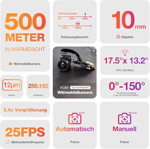 AGM G2 Guardian Outdoor Smartphone 5G mit Wärmebild Monokular 500 Meter, Outdoor Handy ohne Vertrag Wärmebildkamera 256 * 192 10mm Objektiv, 8+256GB Qualcomm QCM6490 6.58″ FHD 108 MP NFC(2024)