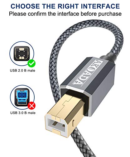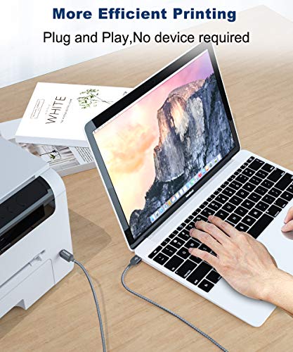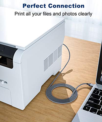 【HIGH-QULITY STRUCTURE】: Um die Haltbarkeit des Druckerkabels zu erhöhen, bildlich darstellen Sie einen stabilen und klaren Reproduktion. Wir haben uns für hochreinen Kupferdraht entschieden und die Anzahl der Kerndrähte und Abschirmschichten erhöht, um USB 2.0 Stecker-auf-USB B-Steckerkabel zu machen, die eine lange Lebensdauer und eine stabilere Verbindung haben.