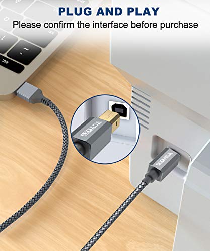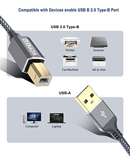 【WIDE COMPATIBILITY】: Dieses Druckerkabel ist kompatibel mit Epson XP-600 / XP-200 / WF-7710 / XP-225 / XP-425 / XP-446 / XP-440 / XP-630 / XP-310 / C88 +, Epson Workforce 545; HP Envy 5660/4520/5055, HP Deskjet 3050/1112, HP Photosmart 5520/7520 / C4750, HP 8600 office pro / HP Laserjet Pro M118DW /, Brother MFC L-27000W, Brother HL-L2300D, Denon MC8000 MIDI Controller, Focusrite 2i2 Audio interface, Bluetooth Cannon MX492, Akai USB EWI, MIDI Controller und MIDI Keyboard mit USB 2.0 B.