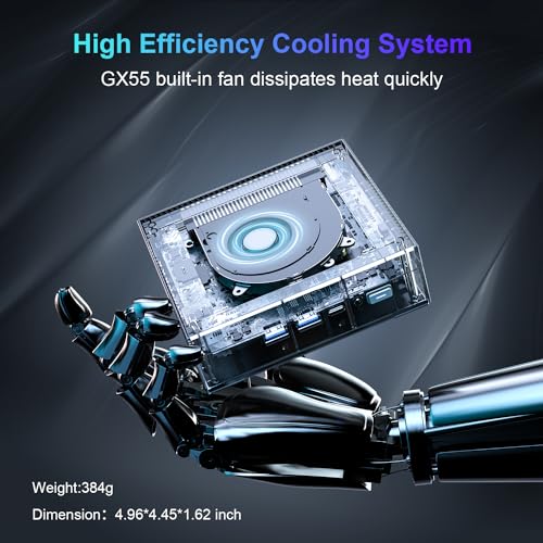 【Mini und leistungsstark】GX55 Small Mini PC Mit Abmessungen von 4,95*4,4*1,5 Preis, ist es nasch akzeptabel und kann allerseits hin mitgenommen werden,ausgestattet mit einem guten Kühlsystem und geräuscharmen Lüfter packt bis zu schneller Leistung, um durch Workflows schneller wie je zuvor zu fliegen. definition,Support multi-task independent display, no need to set up.
