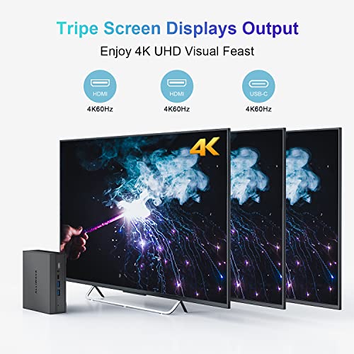 【Brilliant Triple 4K@60Hz output】Allowing simultaneous output on up to three screens in superb 4K@60Hz ultra high definition,Support multi-task independent display, no need to set up.