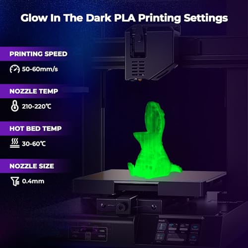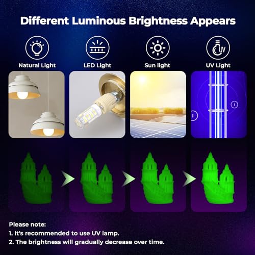 【GLOW PLA FILAMENT】 – Unser Filament enthält 20% Glühpulver, das im Dunkeln leuchtet, da ja es Lichtenergie absorbiert hat. Mit hingegen 30 Minuten Exposition gegenüber starkem Sonnenlicht oder UV-Licht erhalten Sie einen erstaunlichen Glow-Effekt. Unser Glow green pla filament hat den besten Leuchteffekt, dann glow blue filament, glow deep blue purple filament, shiny glow green filament, glow red filament, glow pink filament.