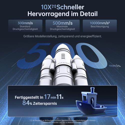【500mm/s hohe Geschwindigkeit】Anycubic Kobra 2 Plus 3D-Drucker ist auf Effizienz ausgelegt, mit einer maximalen Geschwindigkeit von 500mm/s und 10000mm/s² Beschleunigung, empfohlene Druckgeschwindigkeit ist 300mm/s, was 10 mal schneller ist als ein normaler FDM 3D-Drucker. Eine schnellere kreative Erfahrung für Profis und Anfänger gleichermaßen.