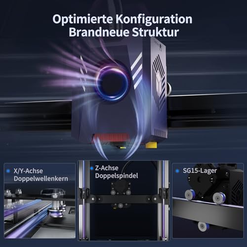 【Optimiertere Struktur】Durch die Verwendung eines optimierten Direktextruders und einer optimierten Bewegungsstruktur verfügt er über eine höhere Extrusionskraft und eine sanftere und präzisere Filamentabgabe. Der Hochleistungslüfter ermöglicht eine schnelle Abkühlung und Formgebung des Modells und vermeidet Unterextrusion und Verstopfungsprobleme der Düse, wodurch der Ausgabe stabiler und präziser wird. Sie können eine bessere Druckqualität und Stabilität erzielen.