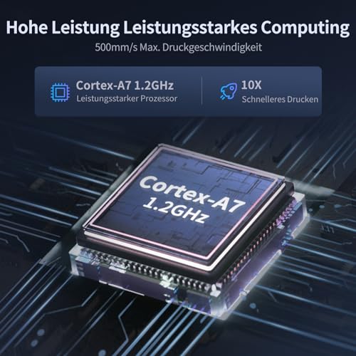 【Mehr Rechenleistung】Er ist mit einem leistungsstarken Cortex-A7-Prozessor mit 1,2 GHz ausgestattet, der Berechnungen und die Abwicklung von Befehlen beschleunigt. Die Zeit für den Ausgabe eines kleinen Bootsmodells wird mit Anycubic Kobra 2 Pro, Ihrem neuen Motor für die Erledigung Ihrer Ideen, auf 14 Minuten und 56 Sekunden reduziert.