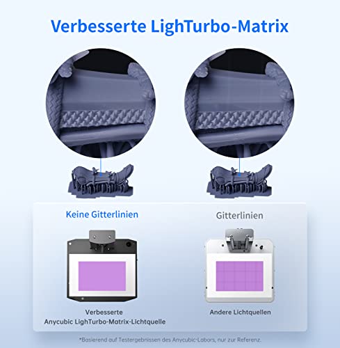 【Lighturbo Matrixlichtquelle】Der Harz-3D-Drucker ist mit einer optimierten LightTurbo Matrixlichtquelle ausgestattet, die stabiles und gleichmäßiges paralleles Licht liefert, um Schichtmuster zu eliminieren und die Oberfläche des Modells glatter und detaillierter zu machen.