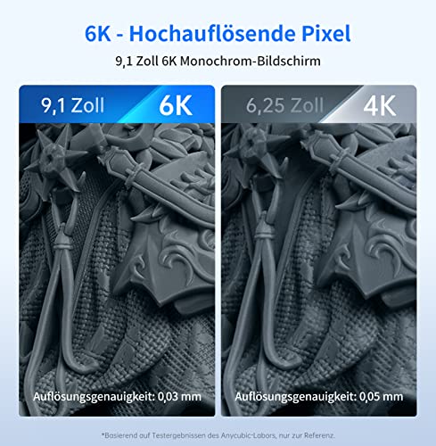 【9,1 Aufwand 6K Großbildschirm】ANYCUBIC Photon Mono X 6Ks hat einen 9,1 Aufwand 6K LCD-Bildschirm mit 5760*3600 Zersplitterung. Kontrastverhältnis von 380:1 und 6,5% Lichtdurchlässigkeit ermöglichen detaillierte Modellwiedergabe. *Mitgeliefert wird bereits eine kratzfeste Folie ab Abhandlung, zusätzlich wird 1 Fragment geschenkt. Bildschirmlebensdauer: 2000 Stunden.