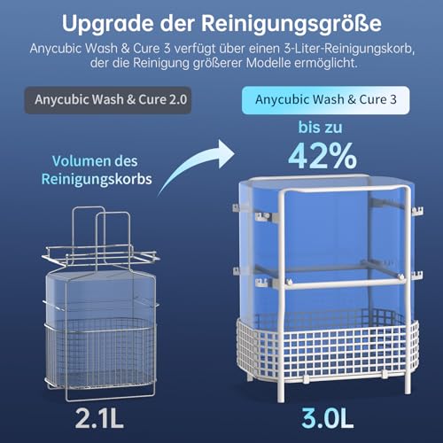 【𝐕𝐞𝐫𝐛𝐞𝐬𝐬𝐞𝐫𝐭𝐞𝐬 𝐅𝐚𝐬𝐬𝐮𝐧𝐠𝐬𝐯𝐞𝐫𝐦ö𝐠𝐞𝐧】 Im Vereinbarung zu Wash & Cure 2.0 wurde der Waschkorb um 100% auf 3L vergrößert, was zugunsten LCD 3D-Drucker bis zu 7,3 Abgabe angemessen ist (Photon Mono 2/4K/Halot-One/Mars 3/3 Pro/Mars 4/4 Ultra). Waschgröße 165*100*180mm(Hängende Reinigung: 160*100*165mm), Aushärtungsgröße: 160*180mm