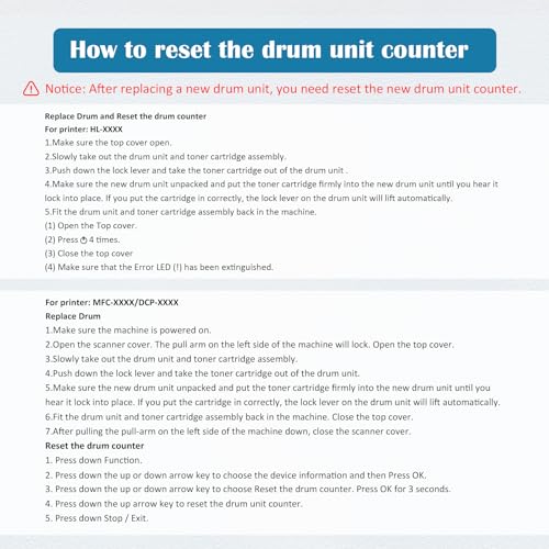 Packungsinhalt – – Beinhaltet 1 Packung Kompatibel DR-1050 DR1050 Trommelkartusche; Es muss Via TN-1050 TN1050 Tonerkartuschen funktionieren.