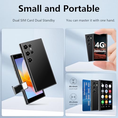 【Ultra-kompakte Größe】 Mit einer Gesamtabmessung von aber 92*49*13mm ist dieses Ultra-Mini-Smartphone unfasslich tragbar und passt leicht in Taschen oder Rucksäcke. Der 3,0-Abgabe-HD-Bildschirm bietet eine klare Anzeigequalität, perfekt für den täglichen Gebrauch von Kindern.