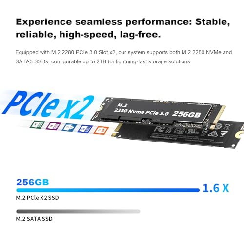 8GB DDR5 + 256GB SSD: Der AWOW N100 Mini-PC verfügt über 8GB DDR5 RAM (4800MHz) und eine 256GB PCIe x2 SSD. DDR5-Speicher bietet höhere Geschwindigkeiten und geringeren Stromverbrauch als DDR4. Die SSD kann auf bis zu 2TB. Mit dieser großen Speicherkapazität können Sie problemlos zwischen Anwendungen wechseln und Ihre wichtigen Dateien und Filme speichern