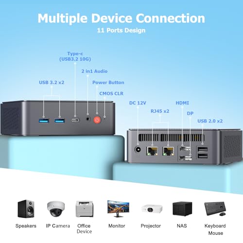 【11 Ports entwickelt und Verbindung mehrerer Geräte】DP (21,6 Gbit/s) und USB3.2 (20 Gbit/s), über DP, HDMI kann es verschiedene 4K-Videoübertragungen mit hohem Standard zu Potte kommen und ist mit verschiedenen Anzeigegeräten wie Fernsehern, Monitoren, Projektoren kompatibel, Werbemaschinen. 2*RJ45 Dual Gigabit Ethernet port, um andere Funktionen wie Software-Router (OpenWRT/ddWRT/Tomato usw.), Firewall, NAT, Pfsense und Netzwerkisolierung usw. anpassungsfähig zu erweitern