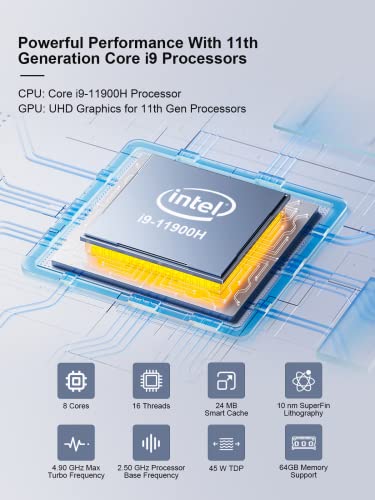 【Hocheffizienter Office Mini PC Windows 11】: Der Mini Computer ist mit dem neuesten Windows 11 Pro System vorinstalliert. Mit dem Core i9-11900H-Prozessor der 11. Generation (8 Kerne, 16 Threads, 24 MB Cache, maximale Turbofrequenz bis zu 4,9 GHz), zuverlässiger und stabiler Leistung, reduzierter Latenz, leistungsstarken Lade- und Verarbeitungsfähigkeiten, kann er einige Büroanwendungen wie Excel/Word/PPT durchführen und kann bekannt als einige Designanwendungen wie PS/PR/AI/DW usw. gut bedienen.