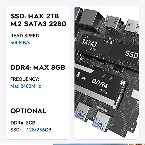 【Prozessor & Betriebssystem】 Beelink GK35 Pro Mini-PC kommt unter Einsatz von Intel Celeron J4105 Prozessor (4C/4T, bis zu 2.5GHz) 8G DDR4 128G M.2 SATA3 2280 SSD. Und vorinstalliertes Wi10 Pro-System, das eine reibungslose Erfahrung statt Ihre leichte Büroarbeit, Surfen im Internet und 4K-Videowiedergabe buckeln kann.