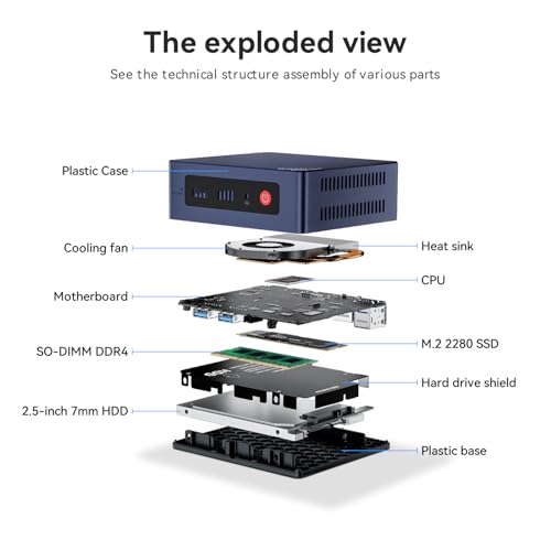 [Flexible Kapazität] Ausgestattet mit 8GB Hochfrequenz DDR4 RAM (Einkanal kann auf 16GB aufgerüstet werden) und 256GB M.2 2280 SSD, Multi-Tasking und reibungsloses Schalten, unter Berücksichtigung von Geschwindigkeit und Kapazität. Darüber hinaus kann es bis zu 2TB M.2 2280 NVMe/SATA3 SSD (nicht im Lieferumfang enthalten) abstützen und eine 2TB 2.5inch 7mm SATA HDD/SSD hinzunehmen (nicht im Lieferumfang enthalten).