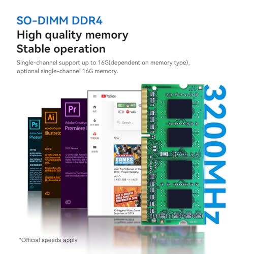 🔥【16GB DDR4 + 500GB M.2 SSD】Beelink N100 ist mit 16G 3200 MHz Alleinstehender-Channel DDR4 RAM ausgestattet, was die Boot-Geschwindigkeit, Lese- und Schreibgeschwindigkeiten eine gehörige Portion erhöht. Die 500 GB SSD bietet ausreichend Kapazität, um Bilder, Videos, Musik und mehr zu bereithalten. Der Speicherplatz kann mit einer 7 mm 2,5-Taxe-SATA-Festplatte erweitert werden (bis zu 2 TB, außer).