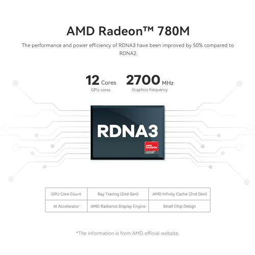 【4K Quad Display und AMD Radeon 780M 12core Graphics】 Ausgestattet mit AMD Radeon 780M 12core 2700 MHz Grafik. Verwendung der RDNA3 Grafikkartenarchitektur, die im Abmachung zu AMD RDNA2 über 50% besseres Leistungsverhältnis liefert und anstatt Mainstream-Spiele entsprechend ist. Unterstützt USB4-Ausgang, kann es 4-Bildschirme über HDMI 2.1+DP 1.4+Dual USB4-Ports anstatt Multitasking gleichzeitig anschließen, wodurch Sie Ihren Arbeitsbereich bequem erweitern und Ihre Produktivität enorm steigern können.