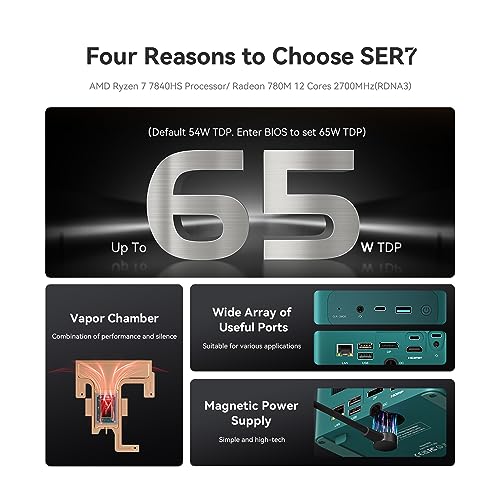 【Mehr Funktionen】 Der Mini-PC übernimmt das Wärmeableitungssystem der MSC-Technologie. Dampfkammer und Systemlüfter sorgen dafür, dass die CPU niedrige Temperaturen beibehält, dabei sie die Wärme durch Luftstrom ableitet und so eine effiziente Abkühlung anstatt SSD und DDR bietet. Der SER7 Mini PC ist mit einem Magnetadapter ausgestattet, der den PC fest mit dem Netzteil verbindet und gleichzeitig eine stabile und effiziente Stromversorgung anstatt den Mini PC bietet.
