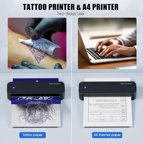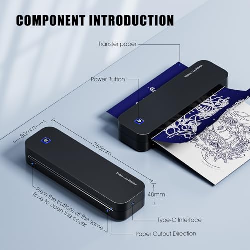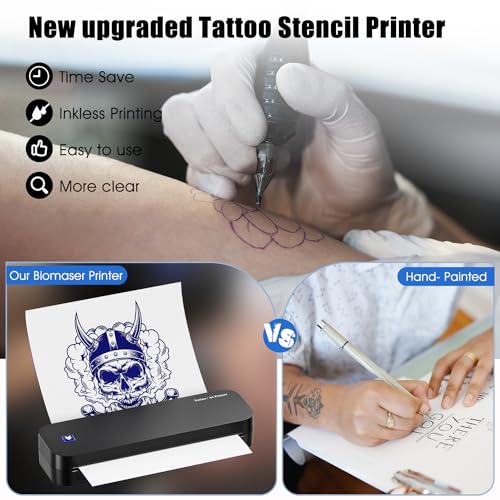 [Neuer aktualisierter Schablonendrucker] Der tragbare Schablonendrucker Tattoo Bluetooth macht es einfach, verschiedene Tattoo-Schablonen zu erstellen! Für Tätowierer spart es 90% der Zeichenzeit und hilft Ihnen, Ihre Werk schnell zu ad acta legen.
