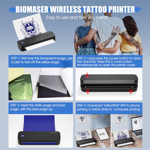 【Hohe Kompatibilität】 Der kabellose Schablonendrucker von Biomaser ist mit mehreren Geräten wie Smartphones (Android, IOS), Tablets, Laptops, iPads und Desktop-Computern kompatibel. Unser Tattoo-Schablonendrucker macht das Entwerfen und Drucken für Tattoo-Enthusiasten einfacher denn je.