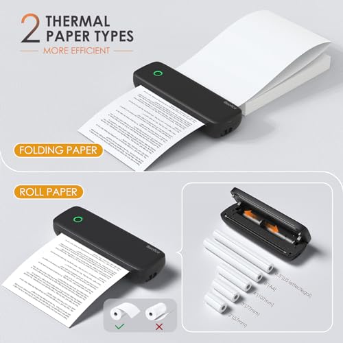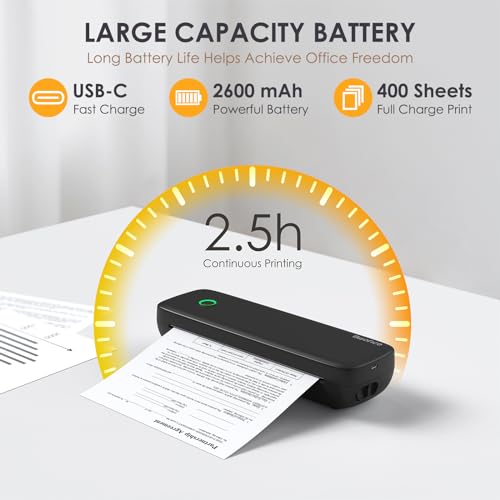 【Mobiler Drucker mit Große Akkukapazität】Es verfügt über einen integrierten 2600-mAh-Lithium-Akkumulator mit großer Kapazität, der nach einer vollständigen Aufladung etwa 2,5 Stunden lang drucken kann. Standby-Zeit bis zu 90 Tage. Mit einem integrierten Papierbehälter eignet er sich perfekt zum Drucken großer Papiermengen auf Geschäftsreisen. Der Premium-Druckkopf kann bis zu 50 km laufen und ist dadurch langlebig.