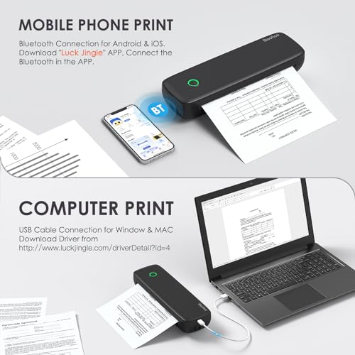 【Unterstützt mobile Geräte und PCs】Dieser mobile Drucker unterstützt sowohl drahtlose wie bekannt als kabelgebundene Verbindungen. In der Luck Jingle-App, erhältlich im App Store (iOS) oder Google Play (Android), können Sie den Drucker über Bt mit Ihrem Mobilgerät verbinden. Sie können den tragbaren Thermodrucker bekannt als verwenden, indem Sie ihn per USB-Kabel an einen PC oder Computer anschließen und den Treiber verwenden.