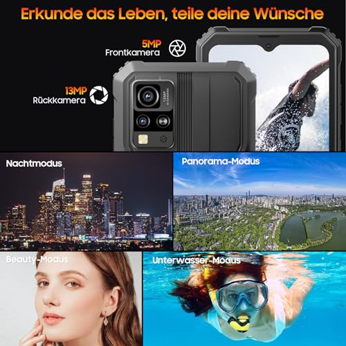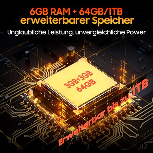 🔥🔥【𝟲 𝗚𝗕 𝗥𝗔𝗠 (𝟯 𝗚𝗕 𝗩𝗶𝗿𝘁𝘂𝗲𝗹𝗹) & 𝟲𝟰 𝗚𝗕 𝗥𝗢𝗠 + 𝟭 𝗧𝗕 𝗲𝗿𝘄𝗲𝗶𝘁𝗲𝗿𝗯𝗮𝗿】Blitzschnelle Reaktionsfähigkeit und flüssiges Multitasking! Unser outdoor handy mit einem leistungsstarken Chipsatz und intelligenter App-Startvorhersage bietet eine dynamische Benutzererfahrung. Erweitern Sie den Speicher auf bis zu 1 TB mit dem TF-Kartensteckplatz, um aus Ihre Lieblings-Apps und -Fotos griffbereit zu verkaufen! Erkunden Sie die Unendlichkeit mit unserem funktionsreichen Anlage.