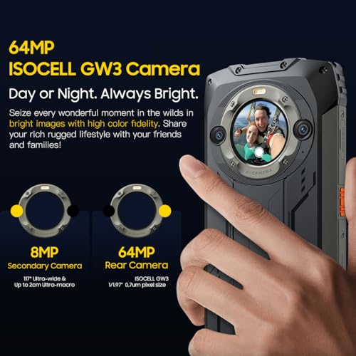 📷 【64MP Rückkamera + 32MP Frontkamera】 Das Blackview 9300 PRO Rugged Phone ist mit einem ultrahochauflösenden 64MP-Bildsensor und Smart ISO-Technologie ausgestattet, die detailliertere Bilder und 4K-Videoaufnahmen ermöglicht. Die 8 MP 120° Ultra-Weitwinkel-Kamera bietet ein viel größeres Sichtfeld in Ihren Fotos mit weniger Preis und die 32 MP Frontkamera mit Beauty-Modus.