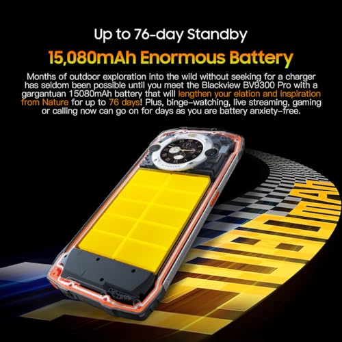 🔋 【15080mAh Akku + 33W Type C Quick Charge】 Ausgestattet mit einem riesigen 15080mAh Akku kann das Blackview BV9300 PRO stundenlanges intensives Gaming vertragen. Genießen Sie schnelles Aufladen mit 33W Kabel jederzeit und überall. Es unterstützt OTG-Guss, können Sie es als eine Powerbank verwenden, um andere elektronische Geräte zu laden.