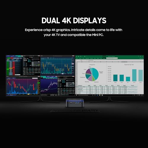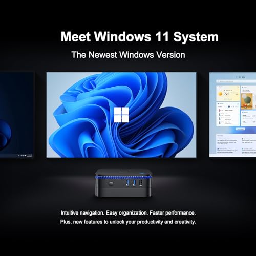 【UHD 4K Dual Screens Display Support】Mini PC Windows 11 Pro mit Intel UHD Graphics 450MHZ (Burst Frequenz 750 MHZ) geteilte Grafik funktioniert gut für 4K@60Hz Video, Spiel spielen und Grafikbearbeitung. Mit zwei HDMI können Sie gleichzeitig zwei Monitore mit bis zu 4K@60Hz anschließen, Ihnen ein anderes Erlebnis zu bieten und Ihre Produktivität zu steigern.