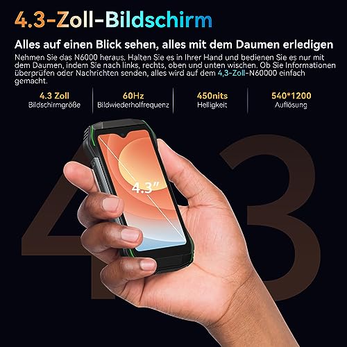 🔥【𝟔𝟎𝐦 𝐅𝐚𝐥𝐥𝐰𝐢𝐝𝐞𝐫𝐬𝐭𝐚𝐧𝐝, 𝐑𝐨𝐛𝐮𝐬𝐭! 𝐑𝐨𝐛𝐮𝐬𝐭! 𝐑𝐨𝐛𝐮𝐬𝐭!】Das Outdoor-Smartphone verfügt über alles, was Sie brauchen, um unzerstörbar zu sein, Corning Gorilla 5, Rahmen aus Aluminiumlegierung, solider Batteriestatus, macht das Smartphone in jeder Umgebung funktionieren, 60m extrem fallen gelassen, 15 Meter Wassertauchen, -40 bis 80℃ extreme Temperatur, nichts kann das outdoor handy zerstören! IP68&IP69K, MIL-STD-810H, Maximum Standard macht N6000 das idealste Geschenk für den harten Mann in Ihrer Familie.