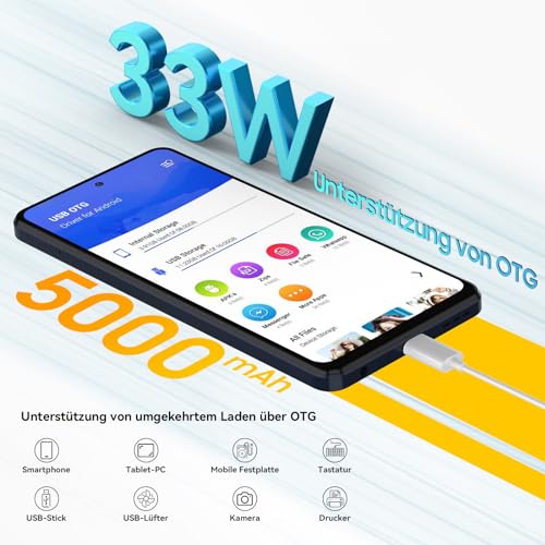 🔋【𝟓𝟎𝟎𝟎𝐦𝐀𝐡, 𝟑𝟑𝐖 𝐒𝐜𝐡𝐧𝐞𝐥𝐥𝐥𝐚𝐝𝐮𝐧𝐠】Der große aufladbare Batterie sorgt für eine ganztägige Nutzung, Blackview smartpower Saving System erfüllt alle Nutzungs- und Ladeszenarien, Performance-Modus sorgt für maximale Effizienz im Spiel, Super-Energiesparmodus verlängert die Lebensdauer in dringenden Situation, Ladeschutz macht das Laden in der Nacht sicherer. 33W Schnellladung ermöglicht es Ihnen, das Smartphone 20% Leistung innerhalb von 15 Minuten aufzufüllen, halten Sie den ganzen Tag lang energisch!