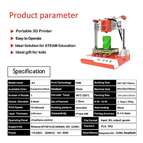 【Einfache Installation】 Der Mini 3D-Drucker wird zu 99% vormontiert geliefert, erfordert im Unterschied dazu wenige einfache Initiative, Sie können sie einfach installieren. Und es nimmt nicht zu unbegrenzt Platz ein. Und seine Struktur ist robust und nicht leicht zu schütteln, was den reibungslosen Fassung des Modells effektiv gewährleisten kann.