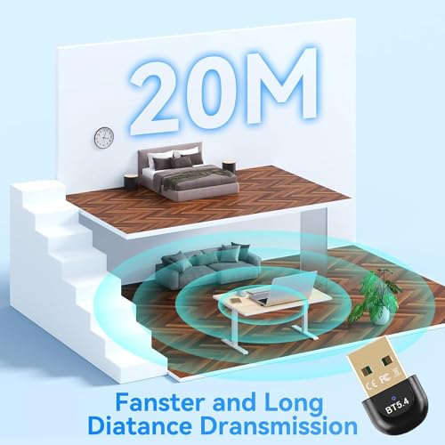 【Verbesserter Bluetooth 5.4 Anpassungseinrichtung】 Verwendet die neueste Bluetooth 5.4+EDR-Technologie, unterstützt die verbesserte Datenrate (EDR) und Übertragungsraten von bis zu 5 Mbit/s. Dual-Mode-Unterstützung Bluetooth 5.4 Low Energy (BLE), reduziert Übertragungseffizienzverluste durch Störungen im 2,4-GHz-Band, verbessert Konstanz und Anti-Interferenz. Abwärtskompatibel mit Bluetooth 2.0/2.1/3.0/4.0/5.0/5.1/5.2/5.3