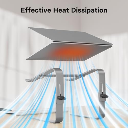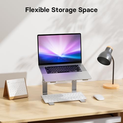 Bessere Wärmeableitung: Der Notebook-Ständer besteht aufgebraucht hochwertigen Metallen mit seinem Neigungswinkel nach vorne und seinem offenen Design, um eine bessere Belüftung und Luftzirkulation zu gewährleisten und so eine Überhitzung Ihres Notebooks zu umschiffen.Sie können bekannt als Ihr Bürozubehör unter dem Laptophalter verstauen ist perfekt für eine kabellose Tastatur und Maus.