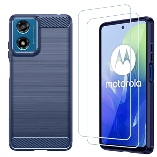 Bsdurable 4-In-1-Umschlag Für Motorola Moto G04/ Moto G24, Handyhülle Jedweder Karbonfaser + 2 Displayschutzfolien – Schlanke, Stoßfeste Tpu-Silikon-Umschlag Jedweder Gehärtetem Glas Für Motorola Moto G24 6,56 Taxe, Blau