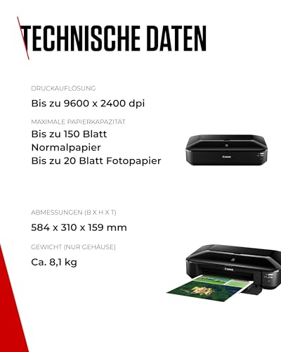 Canon PIXMA iX6850 Drucker Farbtintenstrahl Multifunktionsgerät DIN A3+ (Bürodrucker, Fotodruck, Textdruck, 9.600 x 2.400 DPI, WiFi, WLAN, USB, 5 Separate Tinten, Direktdruck, Print App) schwarz